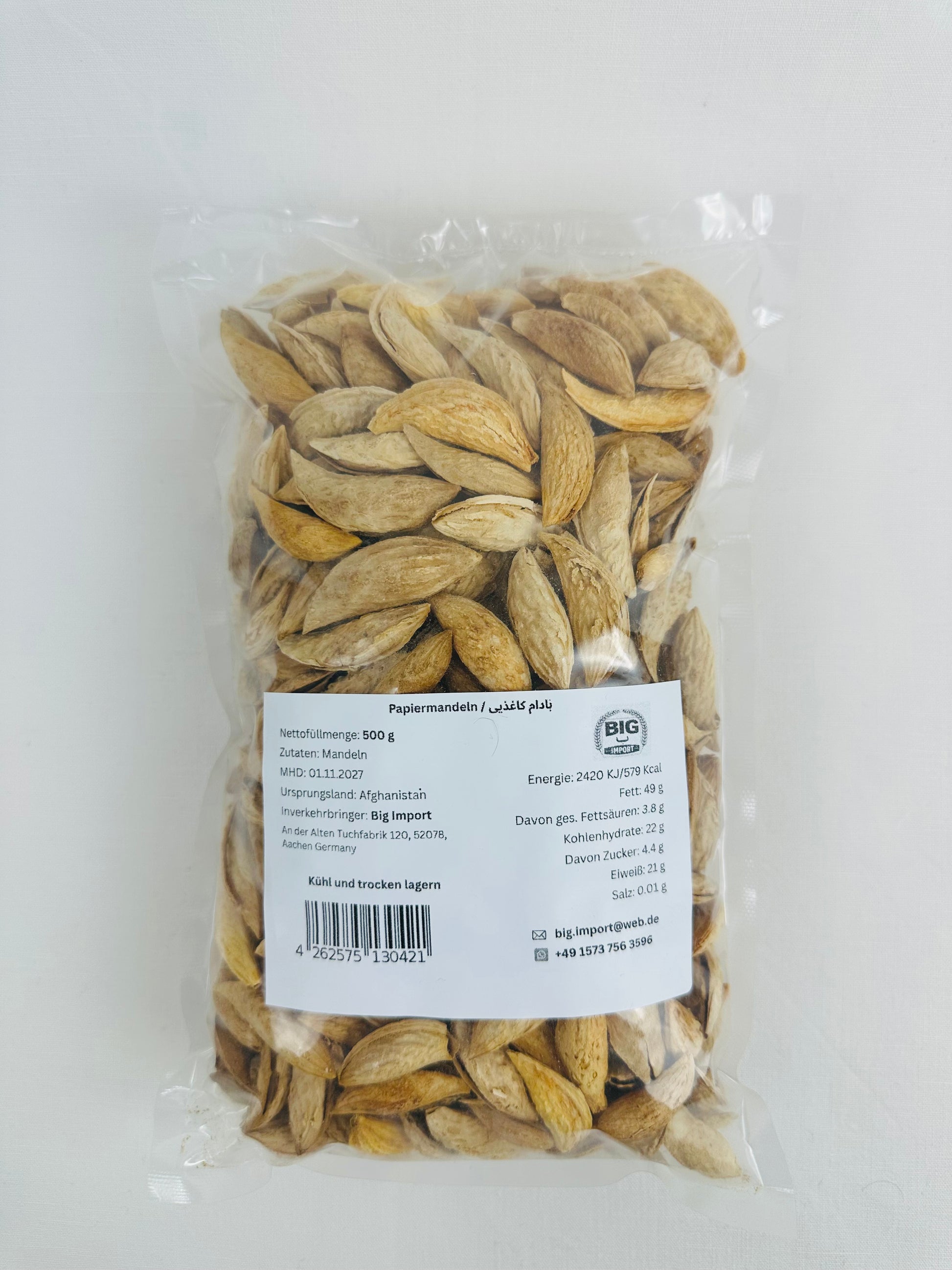 Papiermandeln sind vielseitig verwendbar – ob als Snack für zwischendurch, als Zutat in Backwaren, Desserts oder herzhaften Gerichten. Dank ihrer feinen Schale eignen sie sich ideal zum Knacken und Genießen ohne großen Aufwand.