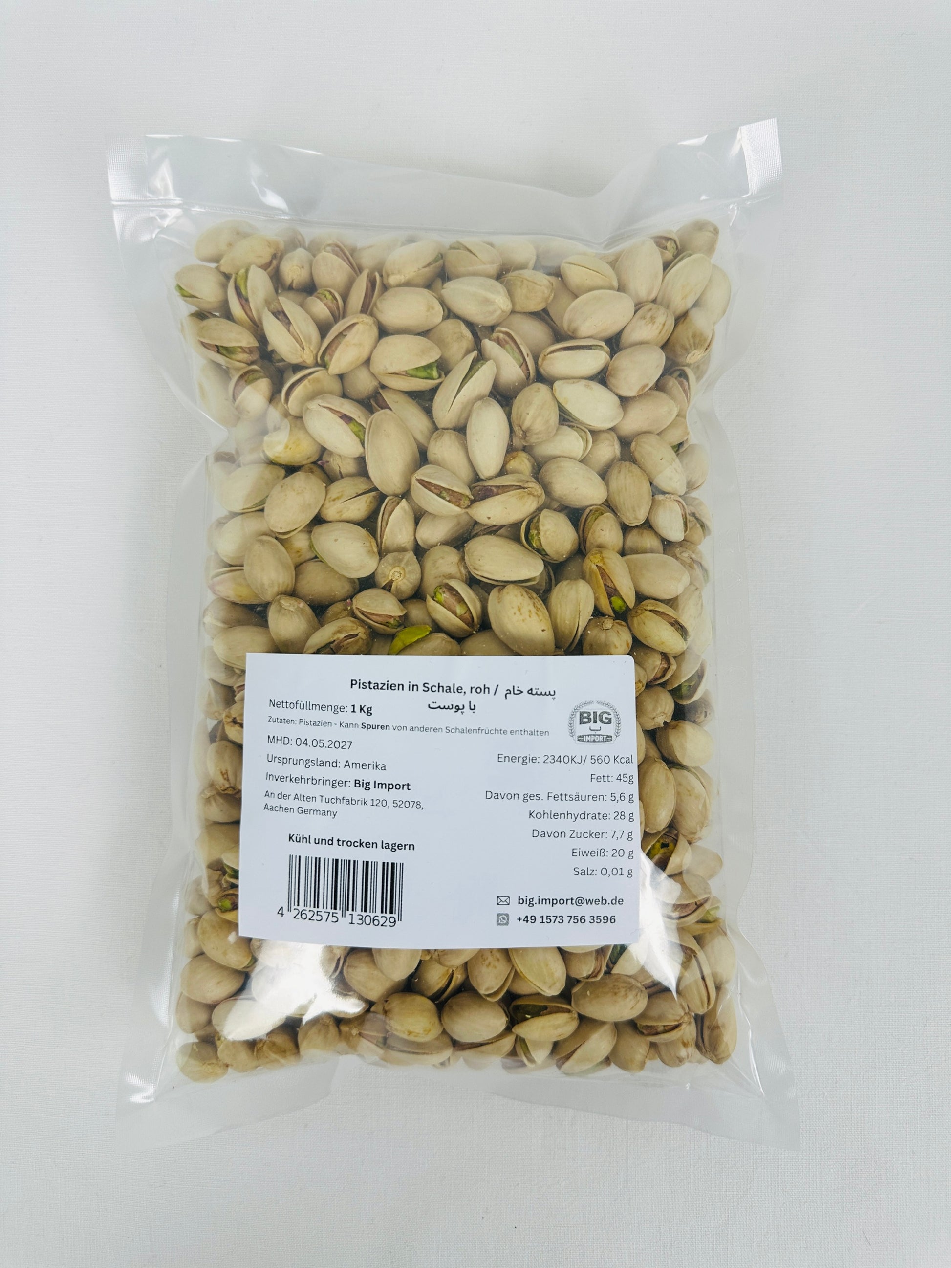 Unsere rohen Pistazien in Schale sind ein hochwertiges Naturprodukt mit intensivem, natürlichem Geschmack. Sie werden sorgfältig ausgewählt und schonend verarbeitet, um ihre Frische, Qualität und wertvollen Nährstoffe zu erhalten. Pistazien sind von Natur aus reich an Eiweiß, Ballaststoffen und gesunden Fettsäuren und eignen sich ideal für eine ausgewogene Ernährung.