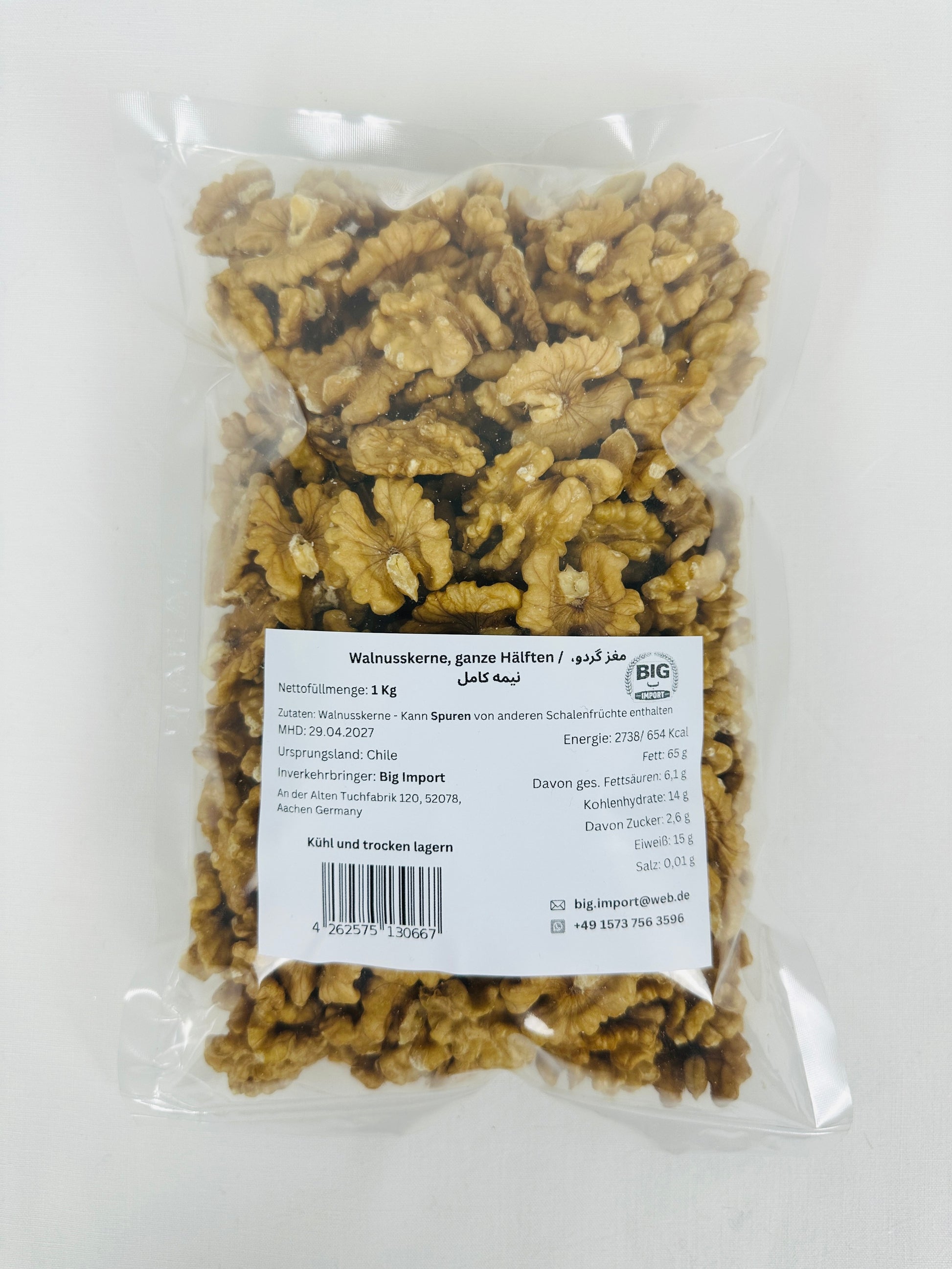 Walnusskerne sind reich an gesunden ungesättigten Fettsäuren, pflanzlichem Eiweiß, Ballaststoffen sowie wichtigen Vitaminen und Mineralstoffen. Sie eignen sich ideal als gesunder Snack, zum Backen, Kochen oder als Zutat für Müsli, Salate, Desserts und zahlreiche warme und kalte Gerichte.